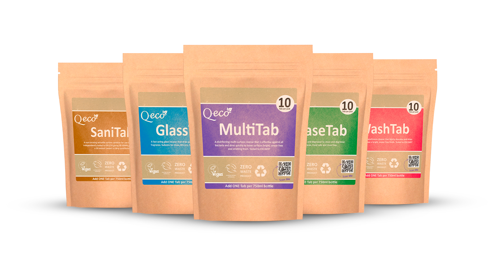 We use Q-eco Tabs across all our cleaning operations — a revolutionary concentrated tablet system that eliminates plastic waste, reduces our carbon footprint and delivers professional-grade results.